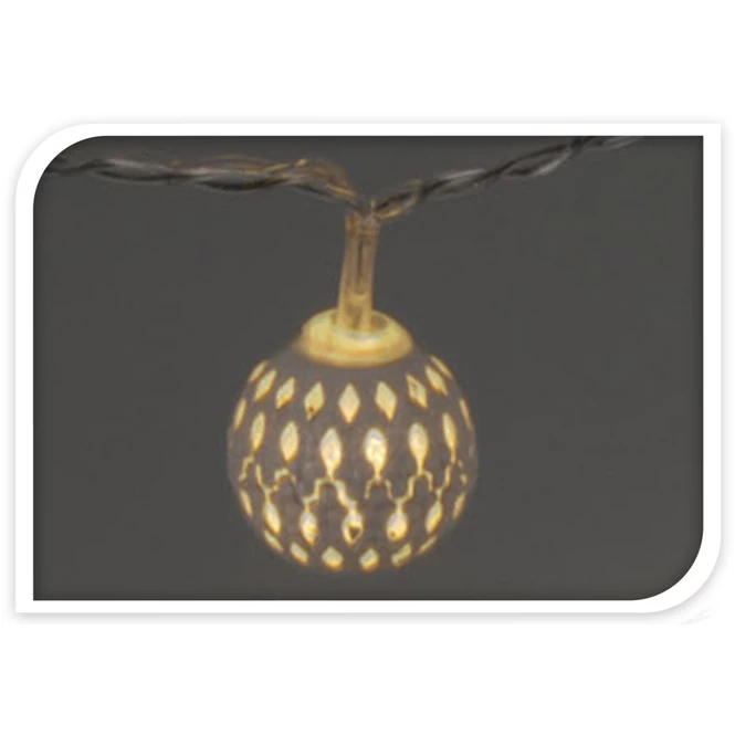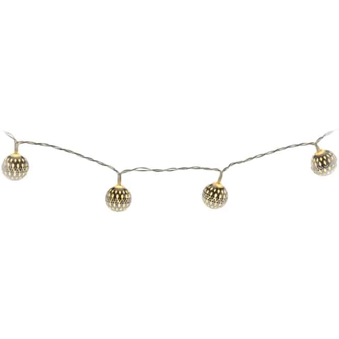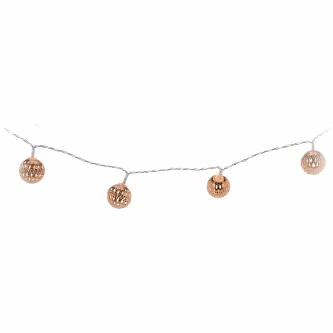 Ob um den Adventskranz gewickelt, dekorativ in einem Windlichtglas zur Schau gestellt oder kunstvoll auf einem Regal drapiert: Lichterketten sind in jeder Jahreszeit ein echtes Highlight, mit dem der Kreativität keine Grenzen gesetzt sind! Aus diesem Grund darf Ihnen die trendige LED-Kugellichterkette in der Vorweihnachtszeit keineswegs fehlen. Diese verleiht Ihren vier Wänden dank der 10 warmweißen LEDs ein behagliches Wohlfühlambiente, das zum Träumen und Entspannen einlädt. Die Kette ist 130 cm lang, in drei stylischen Farben erhältlich und insbesondere aufgrund den liebevoll gestalteten, metallenen Kugeln das glamouröse Highlight Ihrer Weihnachtsdekoration. Mit ihr können Sie sich beim Schmücken fortan jederzeit munter austoben und der Fantasie freien Lauf lassen.