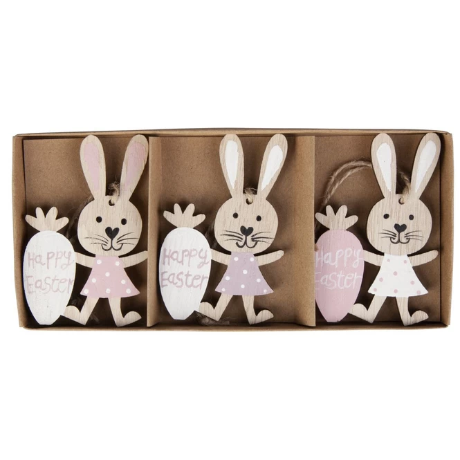 Dekohänger – Hase – Happy Easter – aus Holz – ca. 8 x 5 cm – 3 Stück
