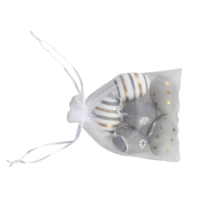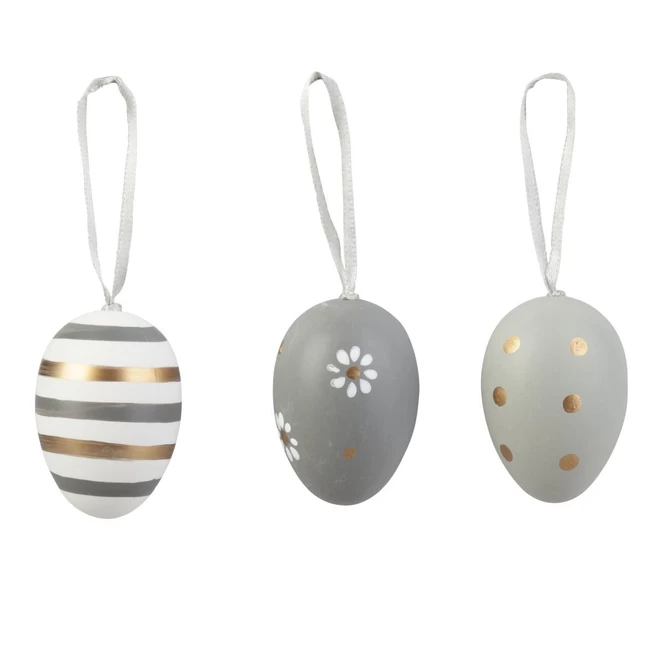 Dekohänger – Ostereier – grau/gold/weiß – aus Kunststoff – ca. 6 cm – 6 Stück