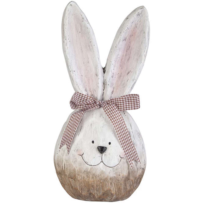 Bald schon steht der Kirche heiligstes Fest vor der Tür und mit ihm die Suche nach geschmackvoller Dekoration. Zu dieser Zeit sind sie natürlich überall vertreten und werden immer wieder neu interpretiert – die Rede ist von Hasen. Wenn Sie auf der Suche nach einem echten Prachtexemplar sind, das binnen Sekunden eine gute Laune verbreitet, werden Sie dieses Stück lieben! Der niedliche Dekohase ist aufgrund der liebevollen Gestaltung der ideale Bote der blühenden Jahreszeit. Er besteht aus robustem Magnesia, ist ca. 16,5 x 12 x 35 cm groß und insbesondere dank der tollen Holzoptik sowie dem Schleifchen ein echter Blickfänger, welchem ganz sicher kein Trendsetter widerstehen kann. Dadurch taucht das tolle Osterhäschen jeden Raum im Handumdrehen in eine fröhliche Osterstimmung, sodass Sie sich beim österlichen Schmücken munter austoben und der Fantasie freien Lauf lassen können. Also schnappen Sie es sich und legen Sie gleich los!
