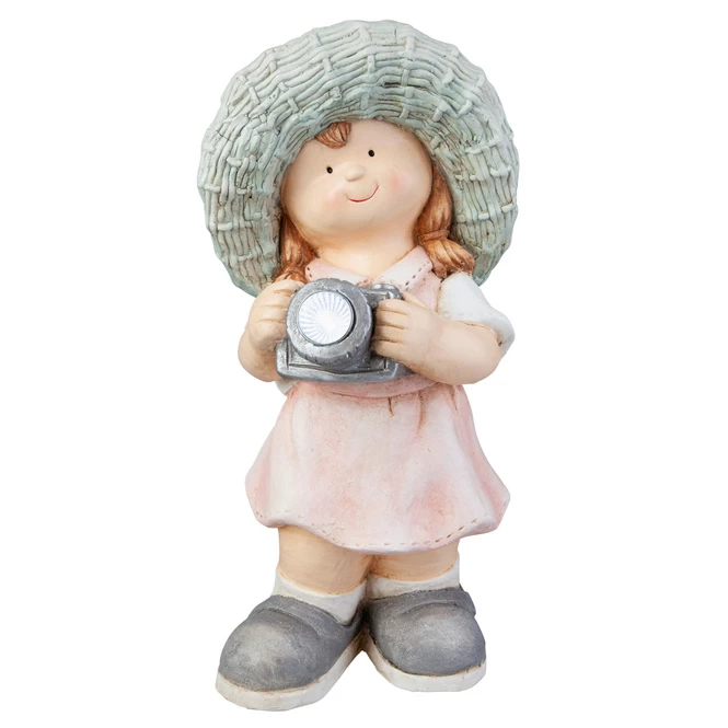 Dekokind mit Solar LED – Mädchen mit Kamera – ca. 22 x 22 x 45 cm