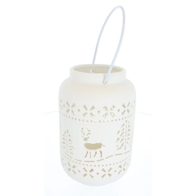 Laterne grau mit LED – aus Keramik – ca. 12,5 x 12,5 x 20 cm