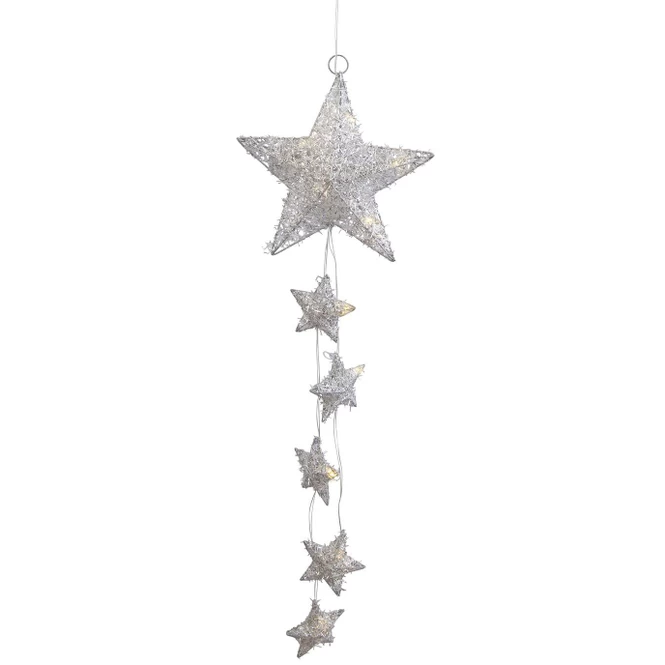 Sie sind das beliebteste Thema in der Vorweihnachtszeit und dürfen daher auch in Ihrem Zuhause keineswegs fehlen: Sterne. Wenn Sie auf der Suche nach einem besonderen Stück sind, mit dem Sie sich beim adventlichen Schmücken munter austoben und grenzenlosen Dekospaß erleben können, haben wir hier genau das Richtige! Der winterliche LED-Dekohänger verzaubert echte Trendsetter im Handumdrehen. Dieser ist nicht nur eine gelungene Neuinterpretation des Adventsklassikers, sondern er eignet sich darüber hinaus auch ideal, um mühelos weihnachtliche Akzente in den vier Wänden zu setzen. Er besteht aus Kunststoff, ist 70 cm lang und insbesondere dank den LEDs, die in Kombination mit 2x AA Batterien (nicht im Lieferumfang enthalten) warmweiß leuchten, ein echter Augenschmaus. Aufgehängt am Fenster, an der Tür oder der Wand kommt der niedliche Stern optimal zur Geltung und taucht jeden Raum in eine behagliche Winteratmosphäre. Also schnappen Sie ihn sich und lassen Sie die Fantasie frei walten!