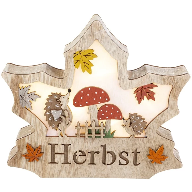 Trendsetter, aufgepasst! Wenn ihr nicht genug von geschmackvoller Dekoration bekommt, mit der ihr eure vier Wände mühelos in eine behagliche Wohlfühloase verwandeln und überdies saisonale Akzente darin setzen könnt, werdet ihr der niedlichen LED-Standdeko garantiert nicht widerstehen! Diese kommt in Form eines herbstlichen Blattes daher, das vor allem durch die liebevollen Details in Sekundenschnelle alle Blicke auf sich zieht. Das Element besteht aus Holz, ist 17,5 x 3 x 16 cm groß und mit warmweißem LED ausgestattet, welches in Kombination mit 2x AAA Batterien (nicht im Lieferumfang enthalten) wohlig leuchtet. Aus diesem Grund ist die herbstliche Leuchtdekoration genau das Richtige, um sich beim herbstlichen Schmücken munter auszutoben und fantastischen Dekospaß zu erleben. Also schnappt sie euch und legt gleich los!