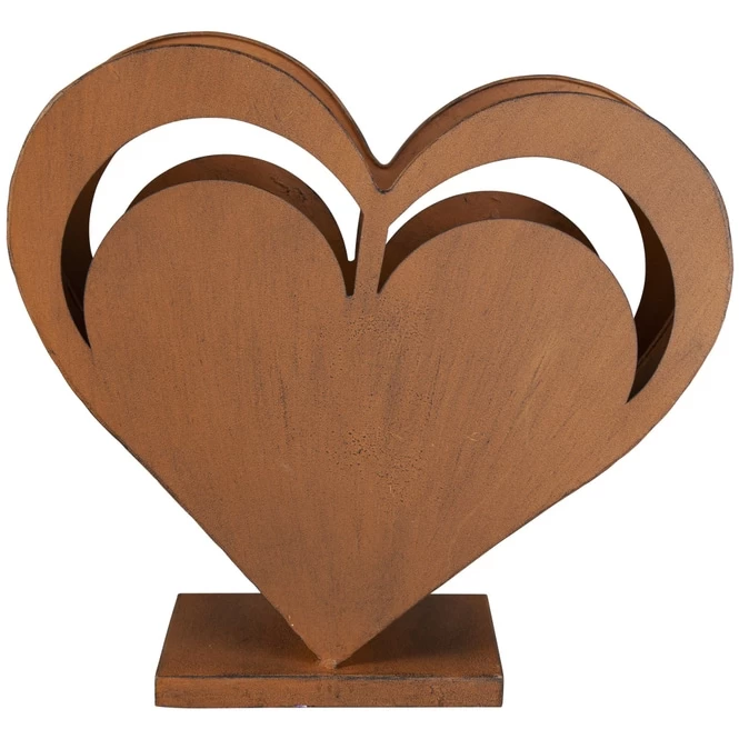 Sie sind auf der Suche nach einem geschmackvollen Übertopf, der Ihre Pflanzen stilecht präsentiert und dabei alles andere als langweilig ist? Dann haben wir hier genau das Richtige! Das niedliche Pflanzgefäß setzt Ihre Blumen besonders liebevoll in Szene und eignet sich somit ideal, um sich beim Gärtnern munter auszutoben. Es kommt in Form eines tollen Herzens daher, welches aus Metall besteht, 27 x 9 x 25 cm misst und insbesondere dank der stylischen Rostoptik ein echter Augenschmaus ist. Durch Letzteres fügt sich das tolle Pflanzherz nahtlos in jeden Raum ein, wo es in Sekundenschnelle alle Blicke auf sich zieht. Also schnappen Sie es sich und erleben Sie grenzenlosen Dekospaß!