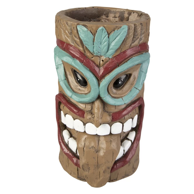Pflanzgefäß – Totem-Gesicht – aus Magnesia – ca. 15,5 x 14,5 x 25,5 cm