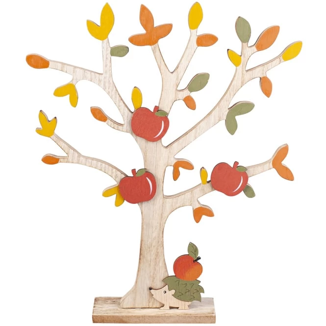 Natürliches Braun, intensives Rot, leuchtendes Orange und erdiges Gelb – das sind die typischen Farben, die das nahende Spätjahr ankündigen und gerade dann in keinem Zuhause fehlen dürfen. Aus diesem Grund eignet sich die niedliche Standdeko hervorragend, um den Herbst stilecht willkommen zu heißen und farbenfrohe Akzente in den vier Wänden zu setzen. Dieser ist dank der liebevollen Details nämlich ein echter Augenschmaus, der Dekoherzen mit Leichtigkeit höherschlagen lässt. Er besteht aus Holz, misst 25,5 x 4 x 31 cm und fügt sich mithilfe der dezenten Gestaltung nahtlos in jeden Raum ein. Dort verbreitet er in Sekundenschnelle eine wohlige Herbstatmosphäre, die an tristen Regentagen zum Entspannen und Träumen einlädt. Also ran an den hinreißenden Dekobaum und munter drauflos schmücken!