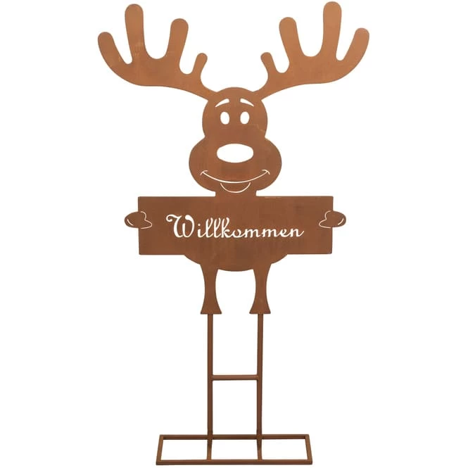 Sie möchten Ihre vier Wände in der Adventszeit hübsch herzurichten, um Ihre Lieben stimmungsvoll willkommen zu heißen? Dann werden Sie die niedliche Standdeko lieben! Diese kommt in Form eines modern gestalteten Rentiers, daher, welches dank liebenswerter Gestaltung Dekoherzen im Handumdrehen höherschlagen lässt. Es besteht aus Metall, misst 47 x 15 x 80 cm und ist vor allem aufgrund der stylischen Rostoptik ein echter Augenschmaus. Mithilfe des dafür vorgesehenen Fußes lässt sich das tolle Deko-Rentier mühelos an die gewünschte Stelle aufstellen, wo es alle Blicke mit Leichtigkeit auf sich zieht. Ganz gleich, ob neben dem Hauseingang, im Vorgarten oder auf der Terrasse – dem hinreißenden Rentier kann garantiert niemand widerstehen. Also schnappen Sie es sich und schmücken Sie munter drauflos!