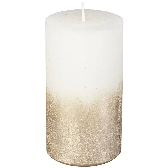 Stumpenkerze – Levi – ca. 6 x 11 cm – weiß/gold