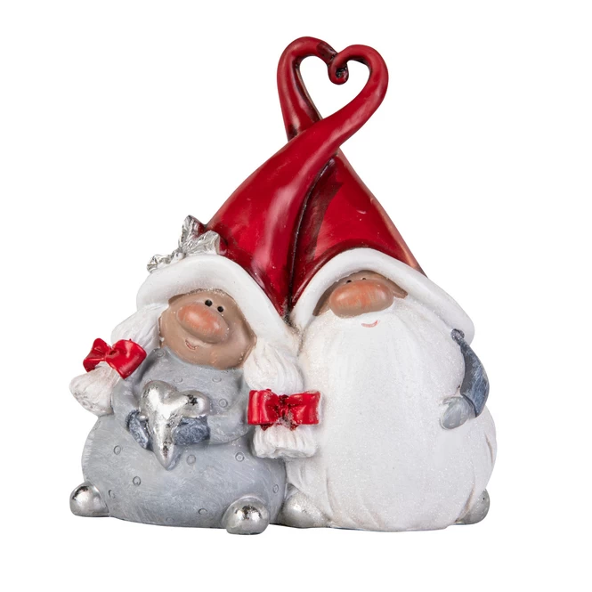 Wichtelpaar rot/grau/weiß – aus Polyresin – 12,5 x 7 x 13,5 cm