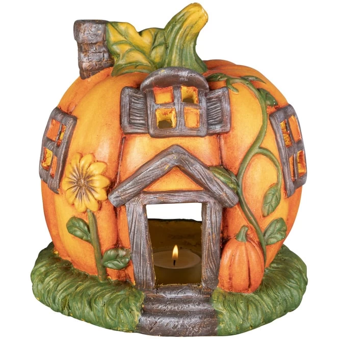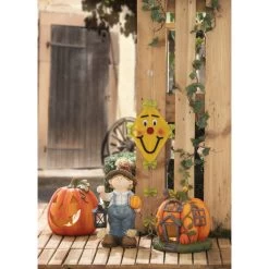 All diejenigen, die nicht genug von geschmackvoller Dekoration bekommen, mit der Sie Haus und Hof in eine behagliche Wohlfühloase verwandeln und im Spätjahr herbstliche Akzente setzen können, liegen mit dem hinreißenden Windlicht goldrichtig! Dieses eignet sich aufgrund der liebevollen Gestaltung nämlich optimal, um sich beim Dekorieren munter auszutoben und der Fantasie freien Lauf zu lassen. Es besteht aus robustem Magnesia, misst 27 x 25,5 x 27,5 cm und ist vor allem aufgrund dem dekorativen Kürbisdesign ein echter Augenschmaus, der Dekoherzen im Nu höherschlagen lässt. In Kombination mit einer Kerze (nicht im Lieferumfang enthalten) taucht es die vier Wände jederzeit in ein behagliches Herbstambiente, von welchem ganz sicher niemand genug bekommt. Ob im Hausflur, Wohn- oder Esszimmer – mit dem tollen Kürbishaus steht einem prächtigen Herbst fortan nichts mehr im Wege!
