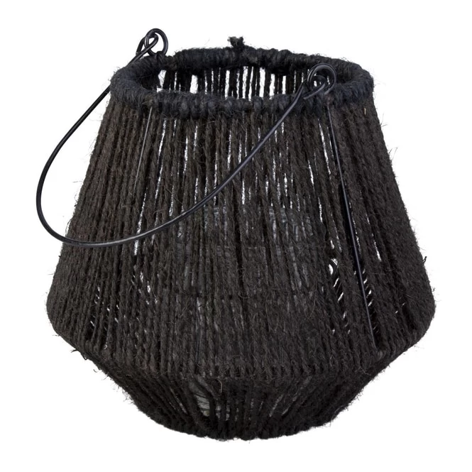 Windlicht – schwarz – aus Jute und Metall – ca. 15 x 20/36 cm