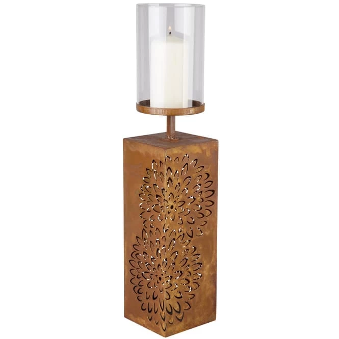 Trendsetter, aufgepasst! Wenn ihr es mögt, eure vier Wände nach dem langen Winter in eine behagliche Wohlfühloase zu verwandeln, werdet ihr dieses Stück lieben! Das hinreißende Windlicht eignet sich optimal, um in Haus und Hof individuelle Akzente zu setzen und euren vier Wänden ein besonderes Ambiente zu verleihen. Es besteht aus Metall, kommt in trendiger Rostoptik daher und ist in zwei verschiedenen Größen erhältlich. Dadurch, dass der Kerzenhalter mit einem Glaseinsatz ausgestattet ist, könnt ihr im Inneren eine Kerze (nicht im Lieferumfang enthalten) zünden und den Tag bei wohligem Flackern ebendieser gemütlich ausklingen lassen. Ganz gleich, ob neben der Eingangstür, im Wohn- oder Esszimmer – mit dem stilvollen Element sind eurer Fantasie beim Schmücken keine Grenzen gesetzt. Also lasst eurer Kreativität freien Lauf und dekoriert munter drauflos!