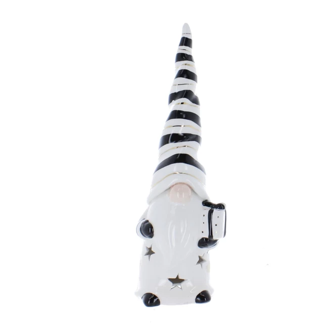 Windlicht Wichtel schwarz/weiß – ca. 10,5 x 8,5 x 30,5 cm